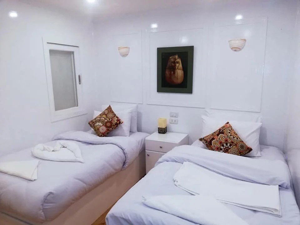 Embark on a pioneering Nile voyage with Three Pyramids Dahabiya. Infusing classic allure with modern comforts, this cruise hotel offers an enchanting blend of history and luxury. Sail smoothly between Luxor and Aswan, relishing sightseeing, traditional feasts, and personalized service. Experience the timeless charm of Egypt in utmost comfort.
